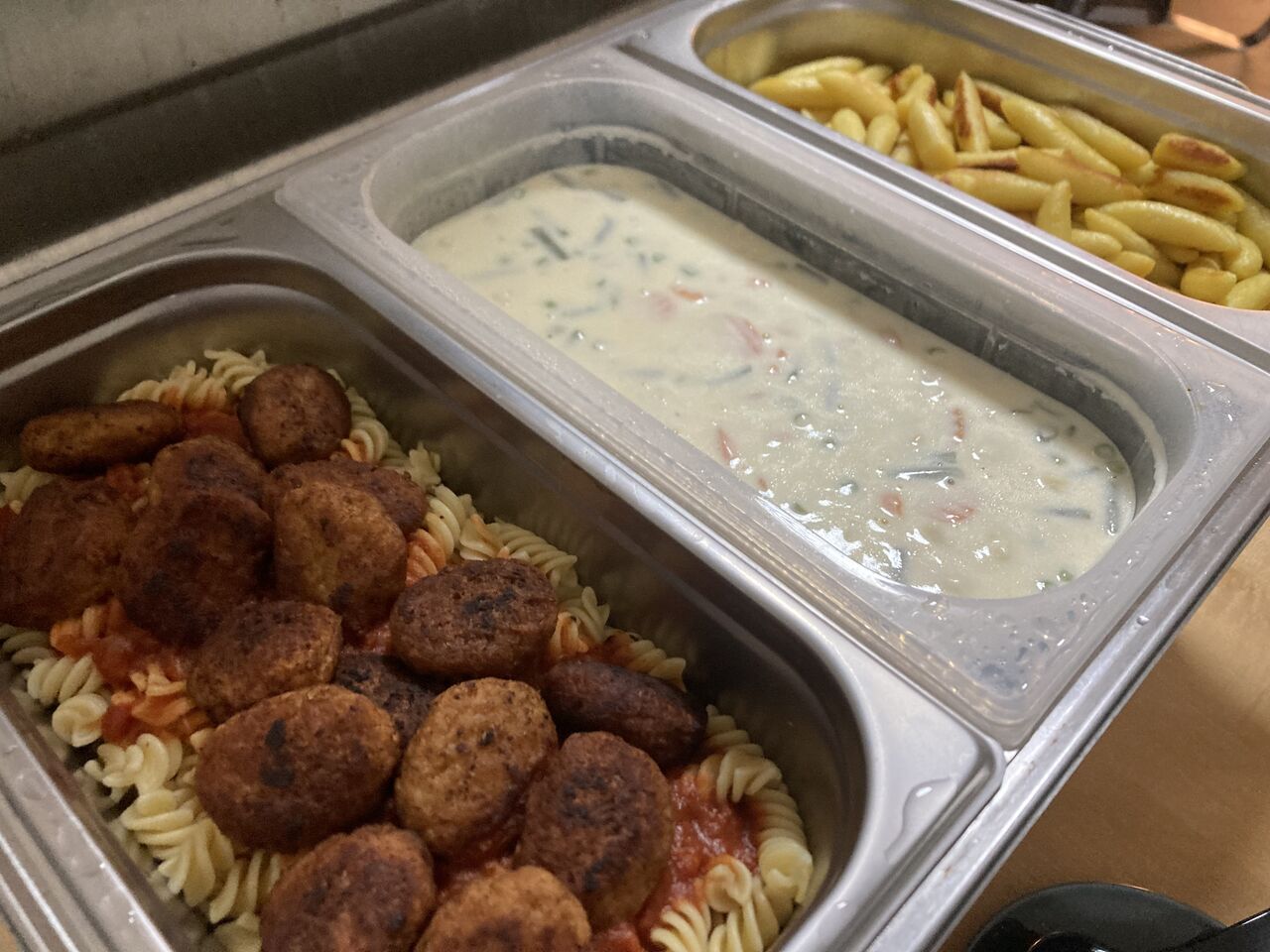 ein wechselndes Angebot an warmen Gerichten.
